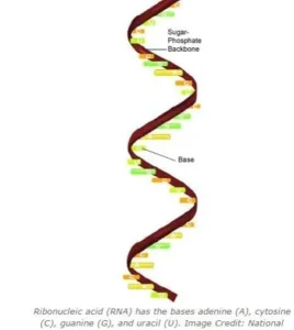 - RNA stands for ribonucleic acid. It is a molecule with long chain of nucleotides. A nucleotide contains a nitrogenous base, a ribose sugar, and a phosphate.