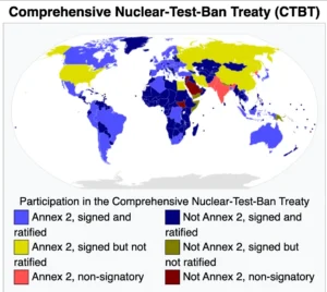 - The treaty would enter into force 180 days after the 44 states listed in Annex-2 of the treaty ratify it. These annex-2 states are those states which participated in the CTBT’s negotiation between 1994 and 1996 and possessed nuclear power reactors or research reactors at that time.