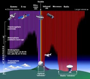 - But, earth’s atmosphere absorbs the majority of ultraviolet, X-Rays, and gamma rays. So they can only be absorbed using balloons and astronomical satellites outside the earth’s atmosphere.