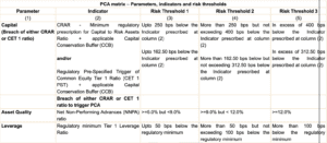 - Essentially PCA helps RBI monitor key performance indicators of banks, and taking corrective measures, to restore financial health of a bank.